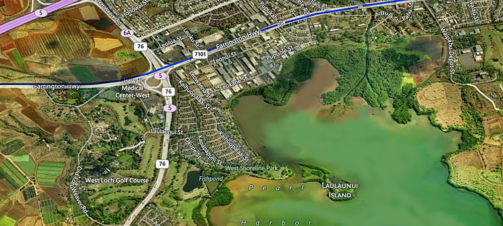 A USGS map of West Loch and Middle Loch shows the feet above sea level averages 20-40 feet. HART rail construction is right down the center of Farrington Highway - so they are hitting Karst caprock in a short distance down as well as likely contaminating the water that flows into Pearl Harbor.